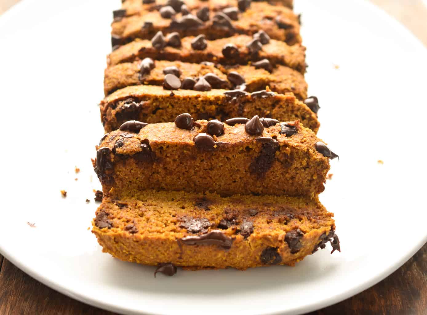 If using thmbb (with lclc and no chocolate chips), each slice or muffin is 80 calories, 2.1g net carbs, 1.8g fat, and 12g protein. This moist, flavorful low carb chocolate chip pumpkin bread has about 3 net carbs per slice! Add in pumpkin and baking powder and whisk to combine. In a separate medium bowl, mix all the dry ingredients except chocolate chips. The nice soft texture contrasts wonderfully with the chocolate chunks inside.